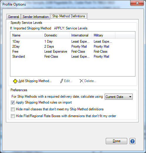 USPS Rate Shopping Engine displays a Gold STAR next to the lowest shipping rate, based on box specificationsWhether your package needs to arrive in two days or ten days, the USPS Rate Shopping Engine can ensure that you never pay more than you have to. This screen shows how you can adjust the service level mail class based on standard shipping definitions.