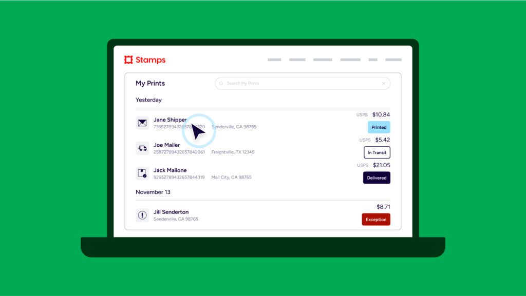 - All-in-one platform: Manage every aspect of sending from one place—whether it’s printing postage, managing send and spend activity, scheduling package pickups, and tracking everything you send.