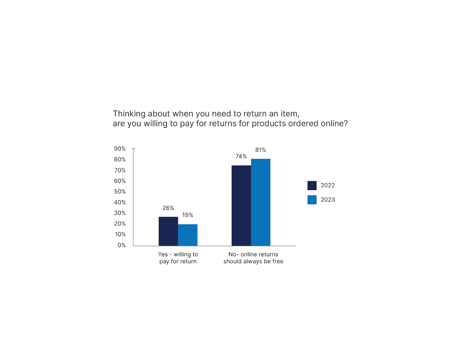 Free returns are becoming increasingly important with customers. In fact, our study found 81% of customers believe returns should always be free. Free returns and free shipping might not fall within your business’s budget, so we recommend prioritizing free returns. The customer expectation around free returns is higher than free shipping, so offering free returns is crucial. As we’ve mentioned, you can offer free shipping during holidays and over a certain threshold, but free returns should be accessible for every order.