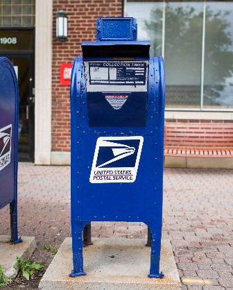 USPS offers a couple of drop-off options, including collection boxes and post offices. Collection boxes are containers with mail/package slots where you can drop-off mail packages. While USPS has several types of collection boxes, you’re probably most familiar with the Standard Collection Box Receptacle (Blue Box) or the blue, metal collection boxes for mail and small packages like the one below.