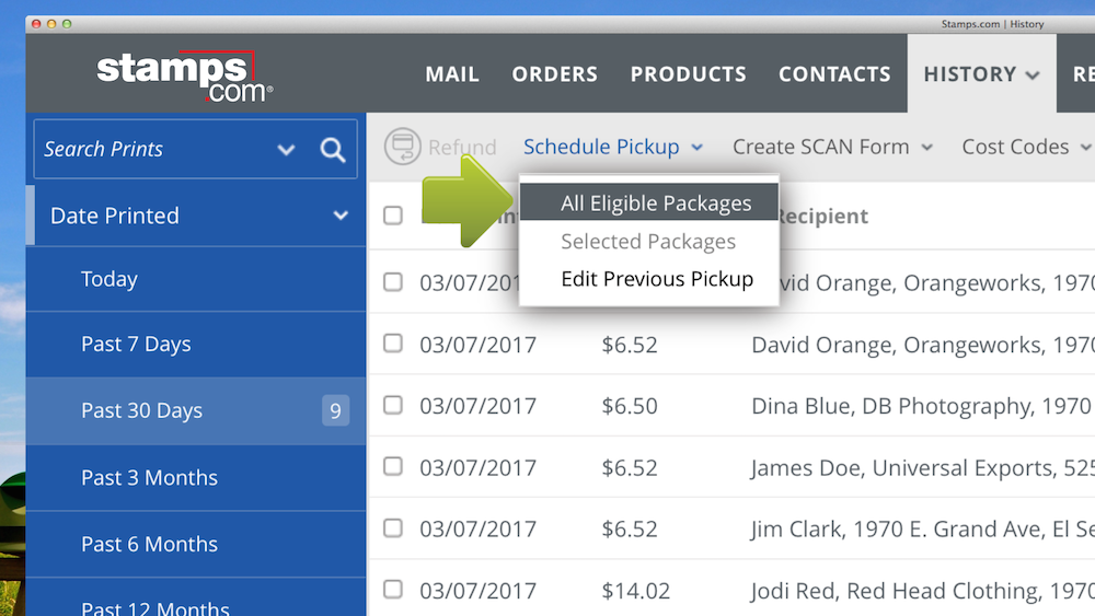 Did you know you can schedule free USPS pickups directly from your Stamps.com account? Packages shipped using Priority Mail Express®, Priority Mail®, and First Class International services can be picked up from your business or home without additional fees. If you’re using a different USPS service, don’t worry! The service is still free as long as you’re also shipping another package using one of the aforementioned services. You can schedule a USPS pickup through your Stamps.com using these steps: