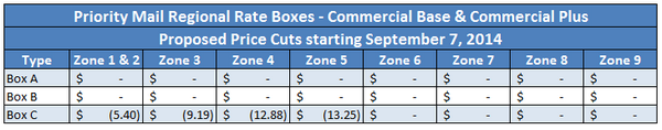 The pricing reductions would only apply to Commercial Base rates (online postage) and Commercial Plus rates. The price reductions focus on packages weighing between 5 lbs. and 26 lbs. for Commercial Base rates with some of the cost savings being as high as $14.89 per package (20 lb. package, Zone 5). For Commercial Plus rates, the reductions will focus on packages weighing between 3 lbs. and 40 lbs. with cost savings being as high as $10.92 per package (30 lb. package, Zone 4). Regional Rate Box C is also seeing prices lowered for packages traveling from Zone 1 & 2 through Zone 5.