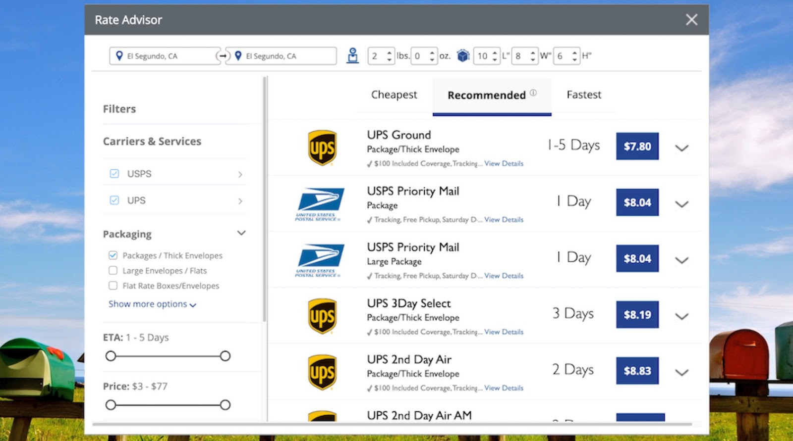 Our Rate Advisor will show you the cheapest shipping option available for your shipment as well as our recommendations and the fastest shipping options. Not only can you compare your shipping options, but once an option is selected, it will automatically show on your order where it’s ready to print. This way, you can choose the best shipping option for each shipment, depending on your customer’s needs. With the help of Rate Advisor, you can keep your shipping rates the same because you don’t have to select the same service for every shipment, and your customers will thank you.