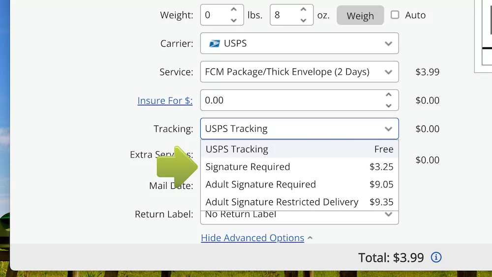 If you’re using another service, select the Tracking drop down menu and then click Signature Confirmation.
